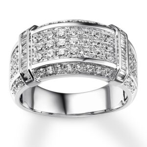 Men’s Diamond Wedding Band 1 ct tw Round-cut 10K White Gold