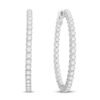 Brilliant round diamonds line the fronts and the inside of the backs to create a unique look in these exquisite women's hoop earrings. Fashioned in 14K white gold, the total diamond weight is an impressive 6 carats and the earrings secure in place with snap-lock backs.